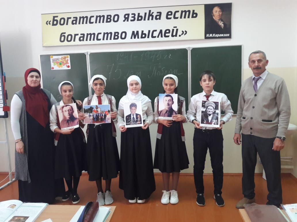Муса Супьянович подготовил к уроку аудиовизуальный материал: фотографии ветеранов с. Кулары, прославившихся в годы Великой Отечественной войны. На уроке присутствовали: классный руководитель 6-го «В» класса Дашаева Луиза Муслямовна, заведующая школьной библиотекой Дашаева Лариса Муслимовна.