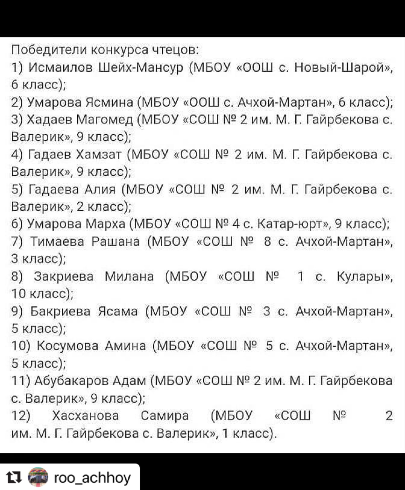 В мероприятии приняли участие обучающиеся всех школ Ачхой-Мартановского района. Списки победителей и лауреатов в 2-х номинациях размещены на сайте Национального музея Чеченской республики (http://nacmuzeychr.ru/2780-itogi-konkursa-landysh-serebristyj-2020).