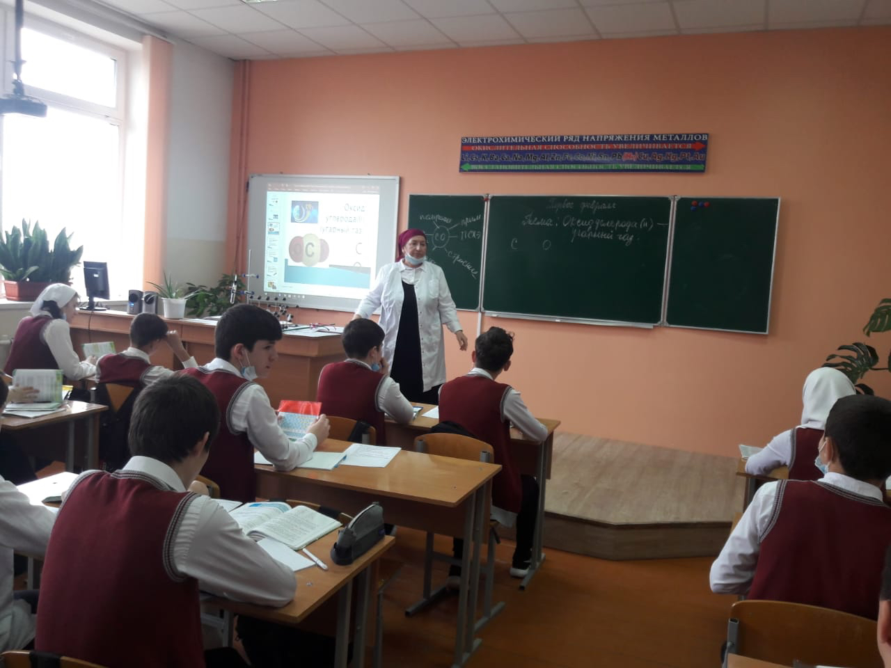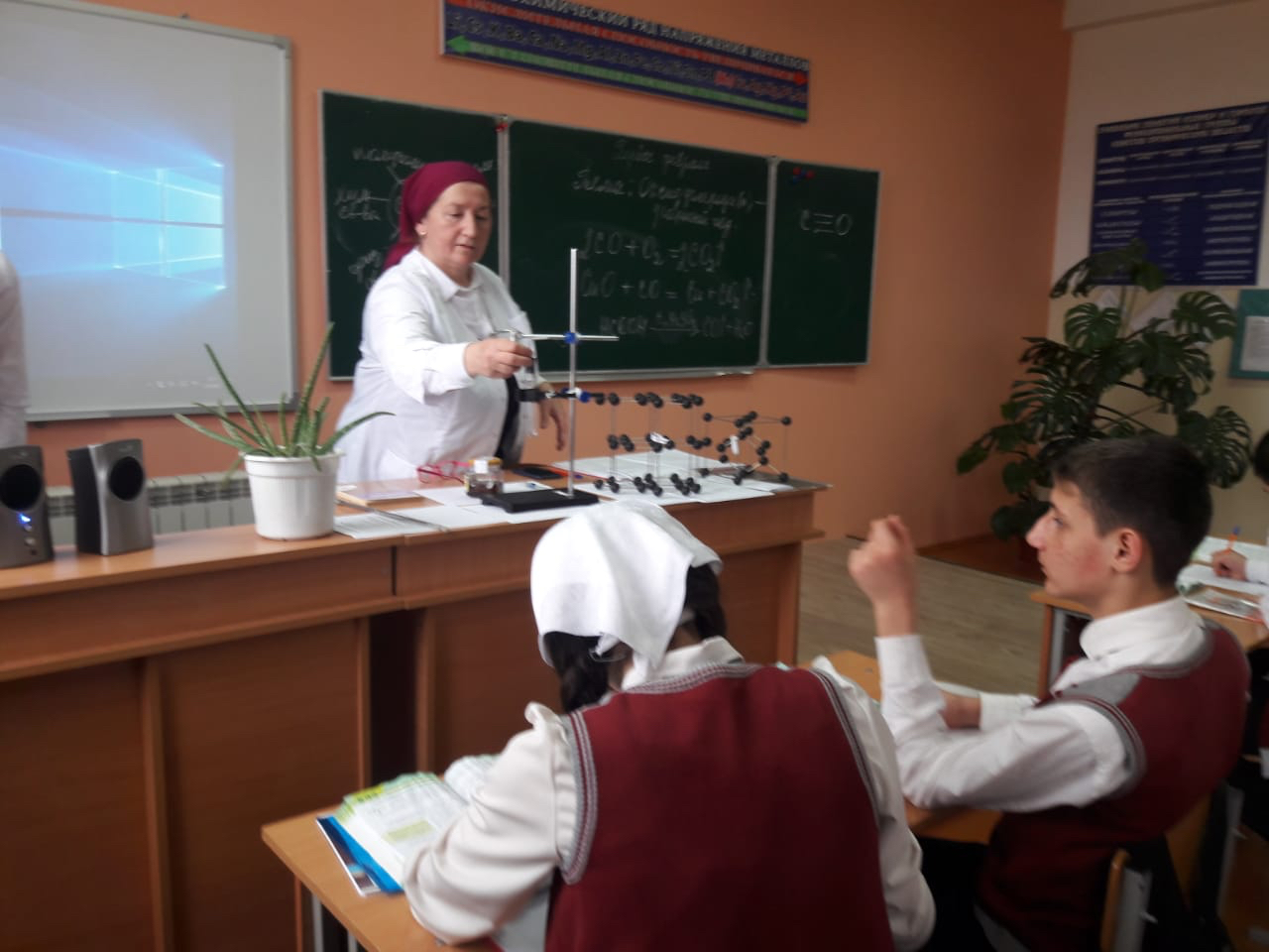 В МБОУ " СОШ 1с.Кулары " согласно плана МС был проведен открытый урок по химии в 9б классе. Подготовила и провела учебное занятие учитель высшей категории Атаева Айна Лечаевна. В ходе урока были использованы объяснительно-иллюстративные методы (беседа, объяснение учителя) , применялись средства наглядности (слайды презентации, демонстрационный эксперимент ). На уроке многократно использовались технические средства обучения: учебный модуль "interWrite"- интерактивная доска". Урок был насыщенным и интересным. Цели урока были достигнуты.