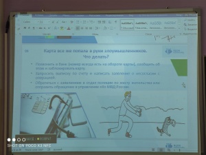 В связи с проведением международной олимпиады по финансовой безопасности и проведении Всероссийского тематического урока «Финансовая безопасность» в 8-10 классах был проведен урок финансовой безопасности. Цель урока - повышение информационной, финансовой и правовой грамотности детей.