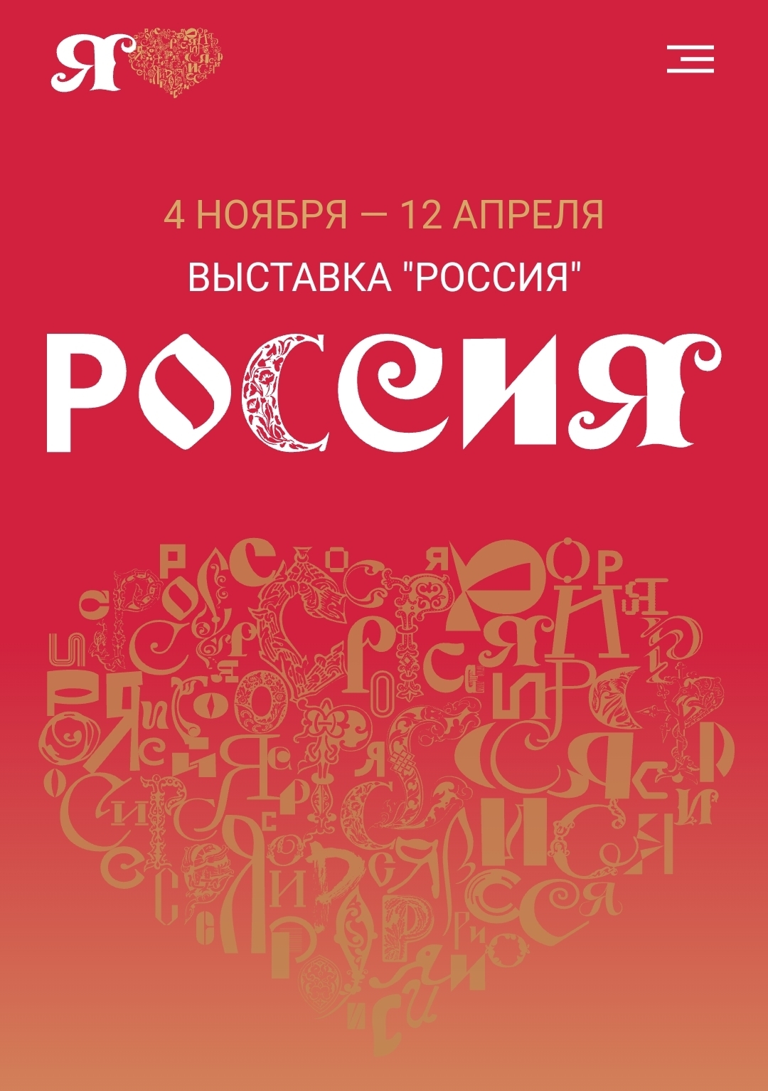 Логотип Выставки ″Россия″ является динамичным и предполагает возможность использования комбинаций букв различных шрифтов. В концепции фирменного стиля учтены шесть исторических периодов России: правление Князя Владимира, Великое княжество, Царство Русское, Российская Империя, СССР и Российская Федерация. Эволюция форм шрифта отражает развитие культуры страны.