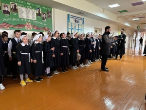 26.09.2023 в МБОУ "СОШ 1 с.Кулары" , была поведена беседа с учащимися с 5-11 класса на линейке,духовником Муртазалиевым И.А про месяц «Раби-Уль-Авваль»
