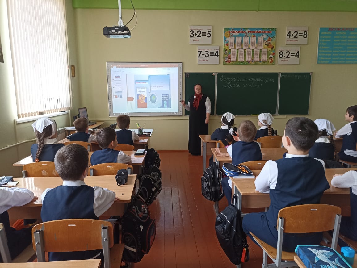 07.12.2023 г. в МБОУ "СОШ 1 с. Кулары" классный руководитель 3 "б"кл Ибрагимова М.Ш. провела классный час на тему "Права человека"
