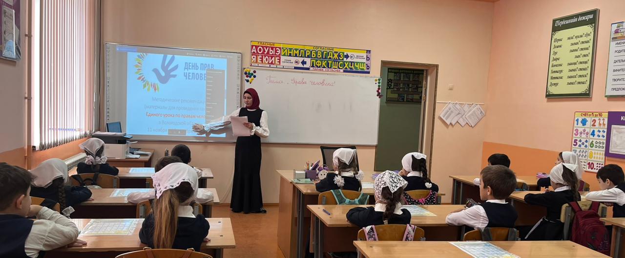 Цель мероприятия- дать учащимся базовые представления о правах и свободе человека, познакомить с Конвенцией о правах ребёнка, с Декларацией прав человека, с Конституцией Российской Федерации. Провела мероприятие Эльмурзаева Марха Руслановна ,учитель начальных классов.