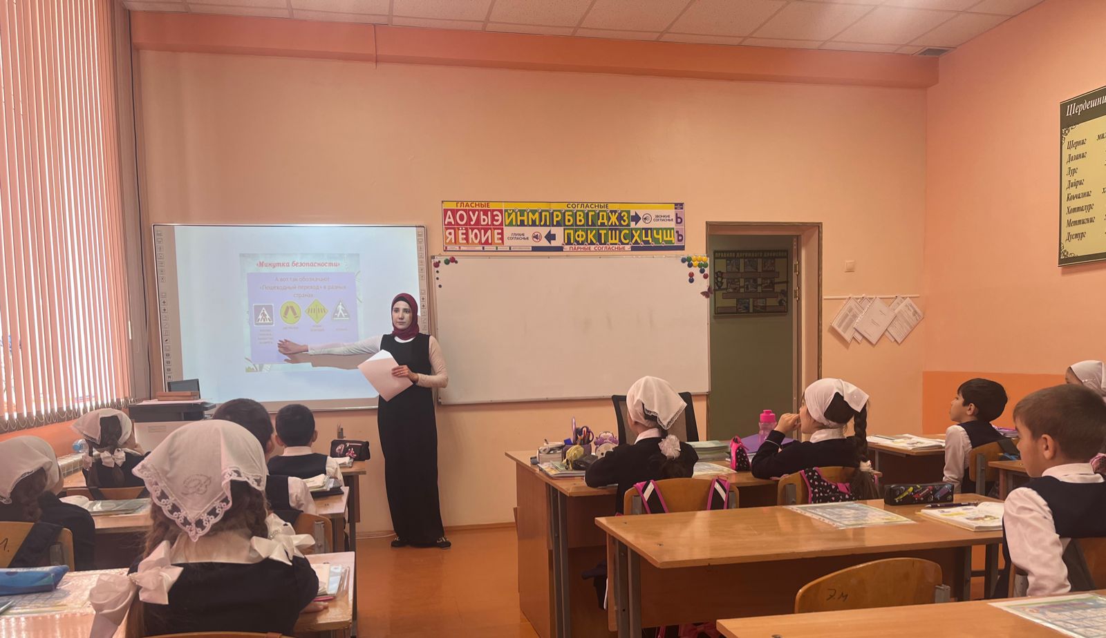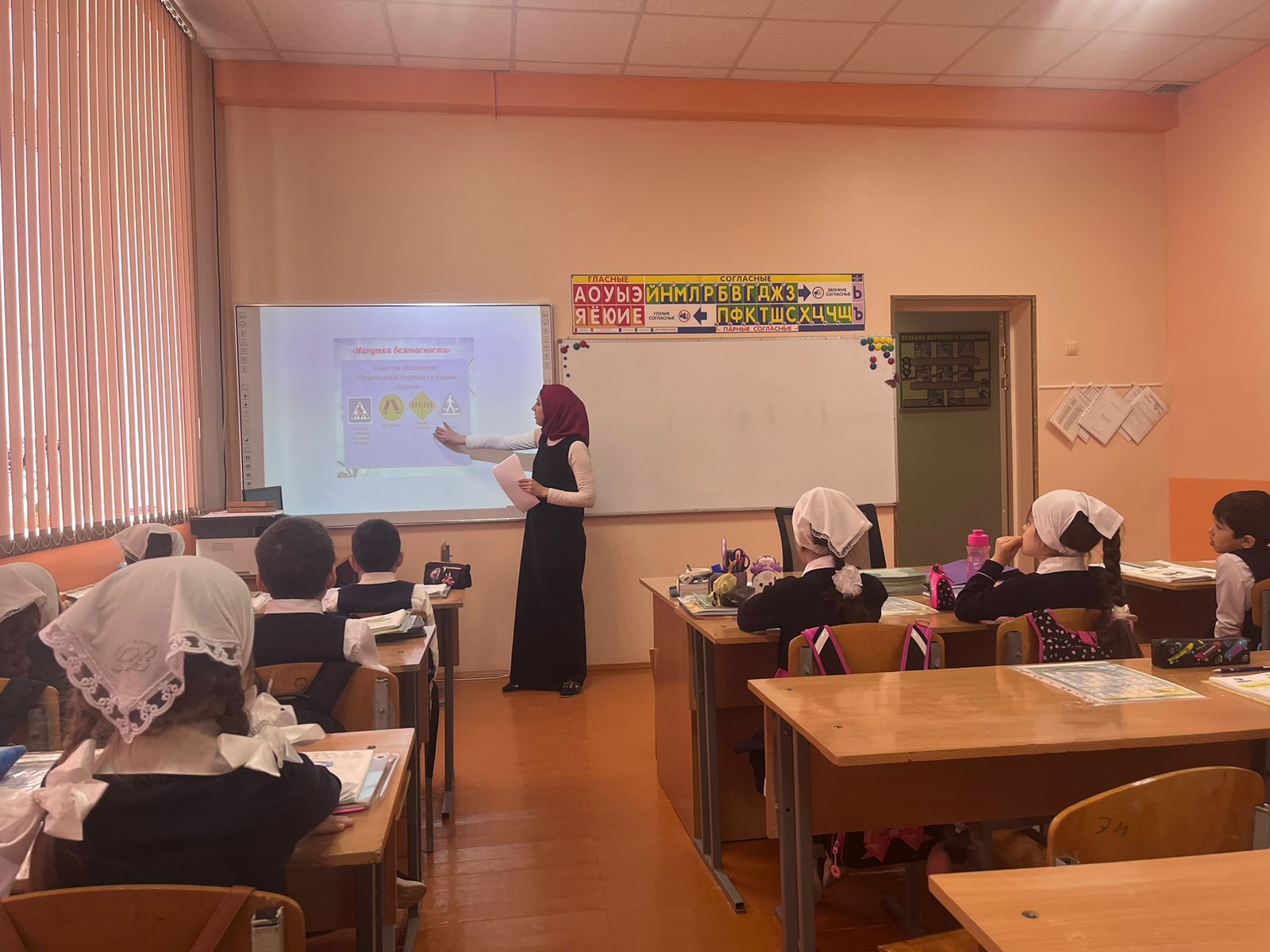 В 1 «Б» классе проведен классный час на тему «Минутка безопасности», учителем Эльмурзаевой М.Р.