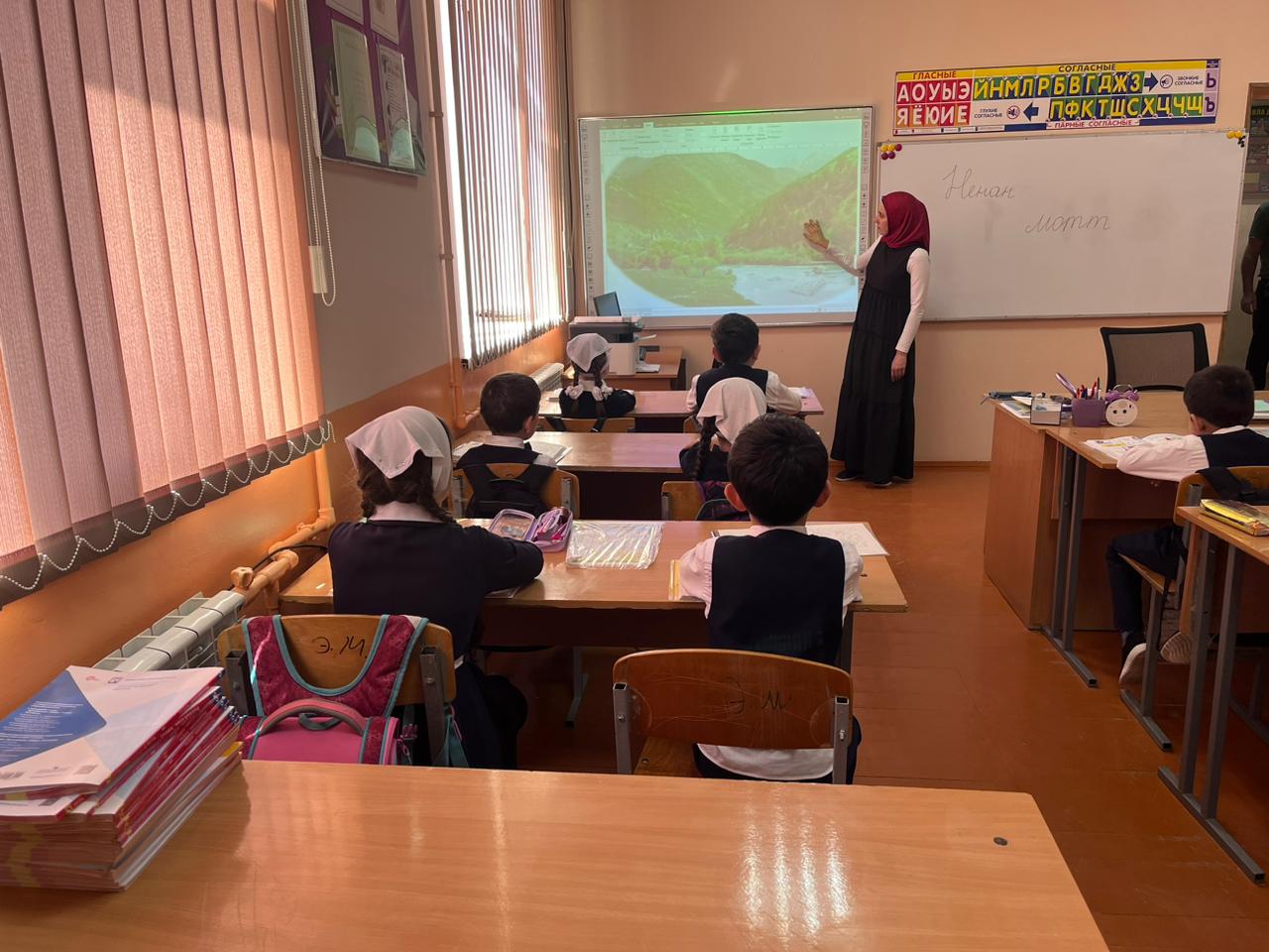 22.04.2024 на базе МБОУ СОШ 1 с.Кулары , в 1Б классе провели классный час на тему:"Ненан мотт,хьо бека бисалахь", посвящённый ко Дню чеченского языка, учителем начальных классов Эльмурзаевой М.Р.