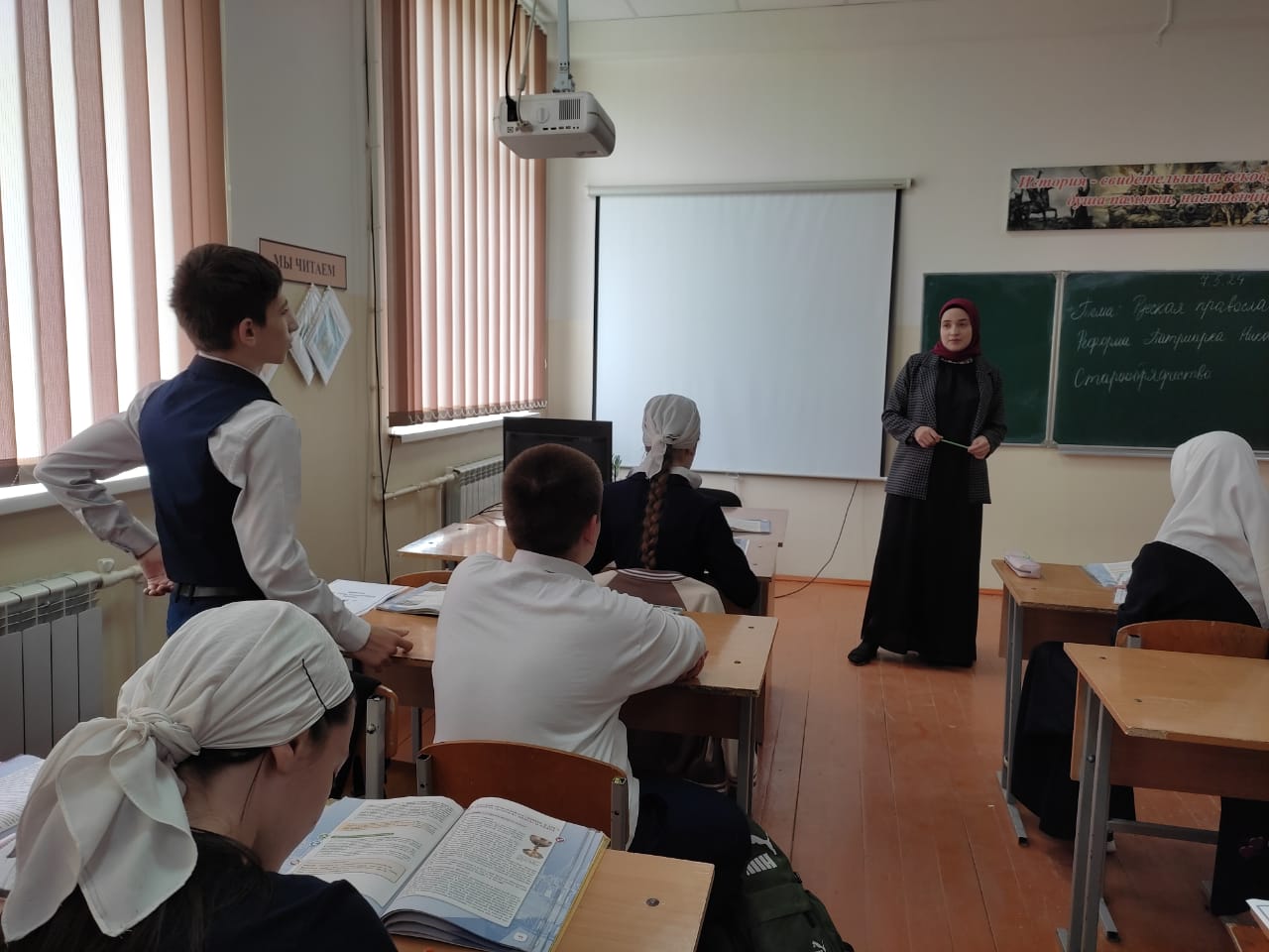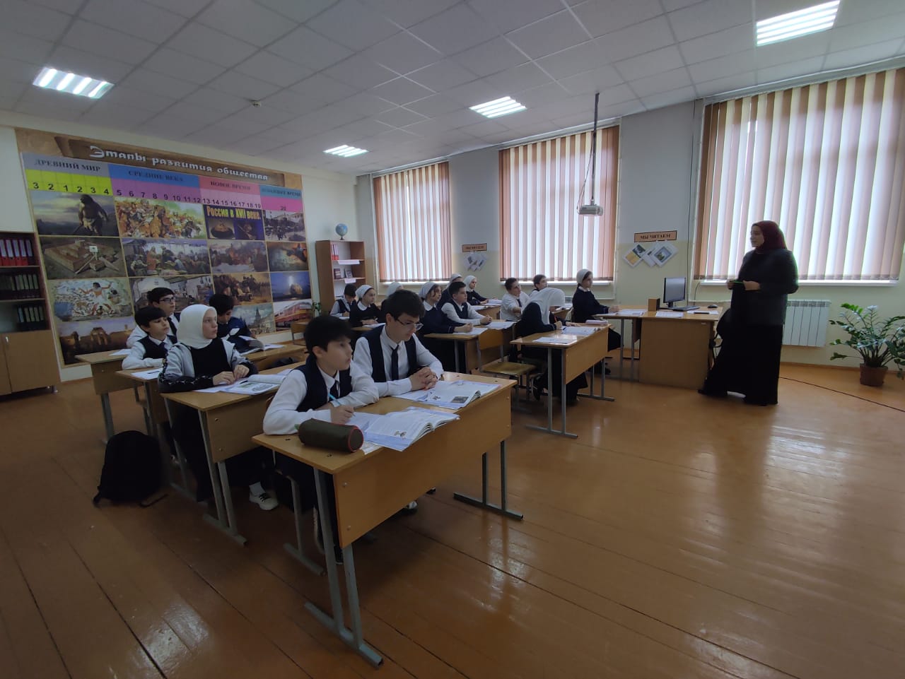 В период с апреля по май посещены уроки молодого учителя истории Магомадовой М.В. Уроки соответствуют учебным программам и календарному тематическому планированию, учитывались возрастные особенности учащихся, этапы урока соблюдены, большинство учащихся активно работают, учитель чередует формы и методы работы.