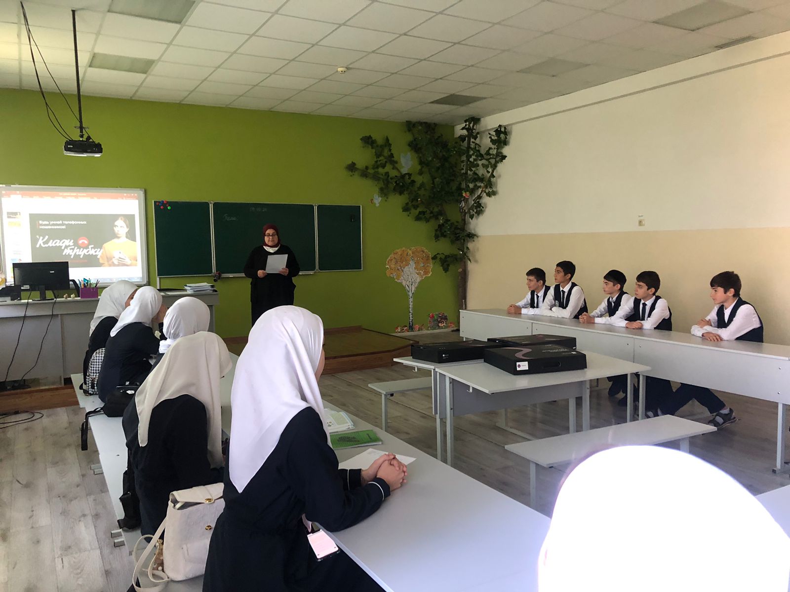 Сегодня учащиеся нашей школы приняли участие в акции "Клади трубку" организованным Отделением-НБ ЧР и министерством образования и науки ЧР.