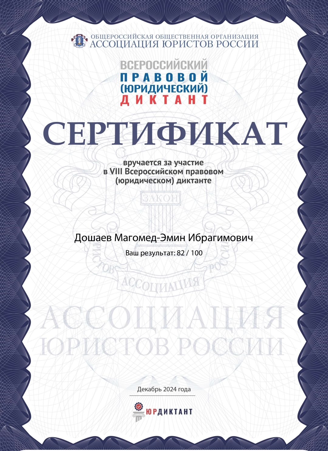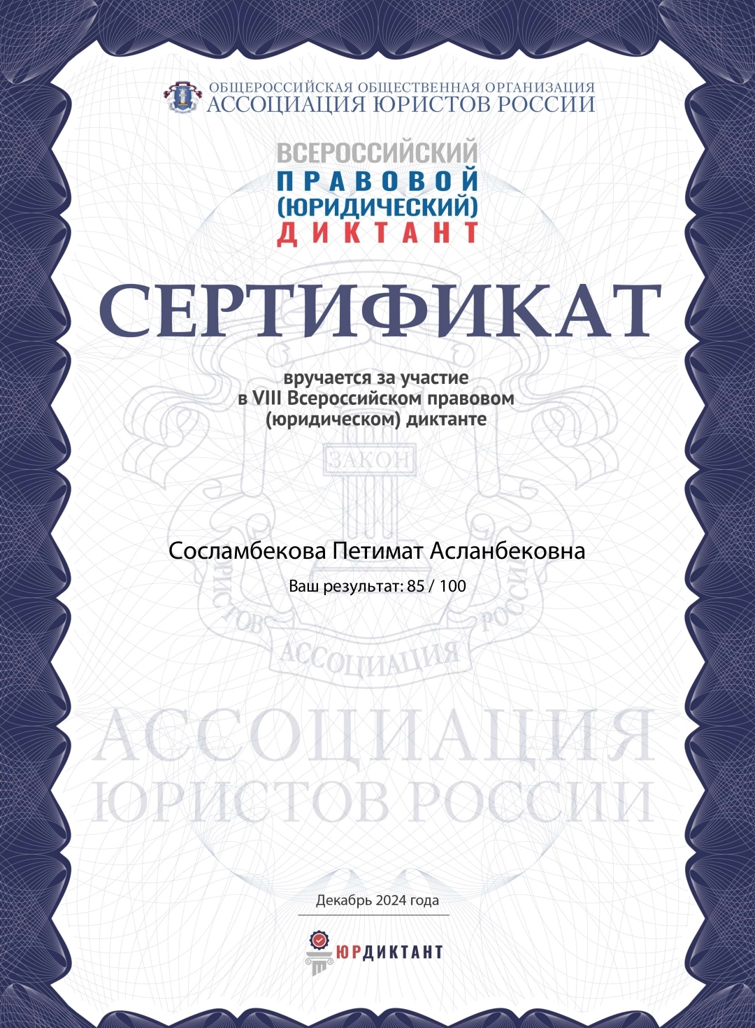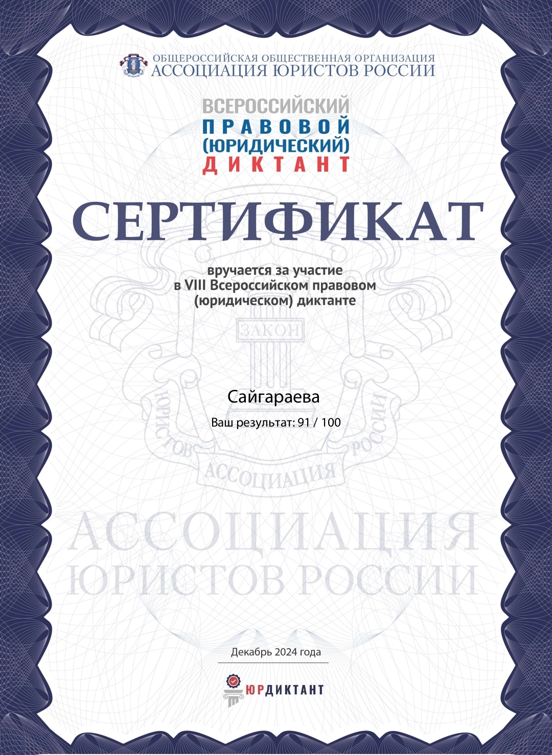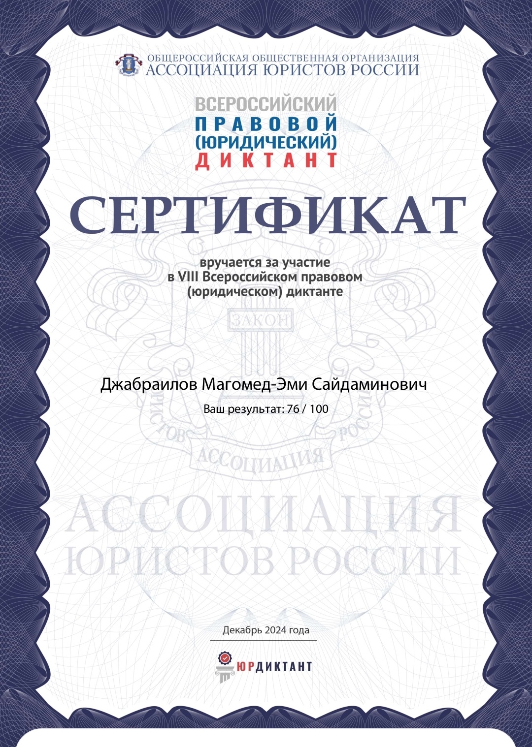 VIII-й Всероссийский правовой (юридический) диктант 2024