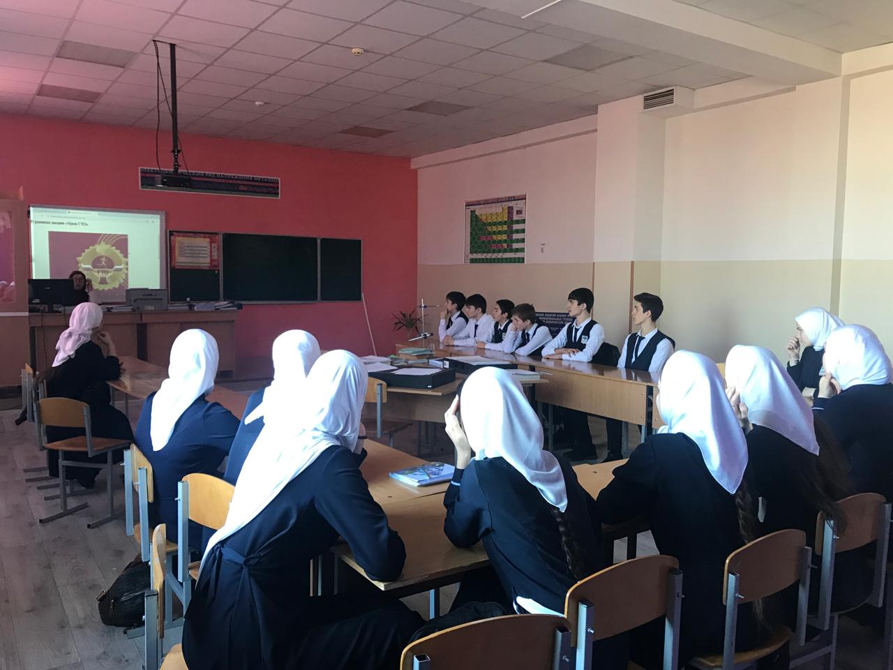 В рамках проведения акции "Урок ГТО" в школе были проведены следующие мероприятия: с 1по11 классы проведены классные часы по заданной тематике. Они включали в себя различные формы и виды проведения. В начальной школе занятия проводились в виде викторин, конкурсов и т.д. Классные руководители среднего и старшего звена провели свои занятия в виде бесед, лекций. Так же в рамках акции в школе учителем физической культуры тоАрсанукаевым А.Х. проводились спортивные соревнования, в которых приняли участие обучающиеся 5-11 классов. Этапы соревнований дублировали сдачу норм ГТО по возрастным критериям среди школьников. Юноши и девушки проходили следующие испытания: бег 60м-100м, прыжки в длину с места, подтягивание, сгибание разгибание туловища и т.д.