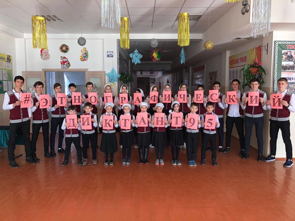 09.12.20179.12.2017г. в МБОУ «СОШ № 1 с.Кулары» по поручению ГЛАВЫ ЧЕЧЕНСКОЙ РЕСПУБЛИКИ, ГЕРОЯ РОССИИ РАМЗАНА АХМАТОВИЧА КАДЫРОВА был проведен масштабное образовательная акция - Республиканский этнографический диктант.